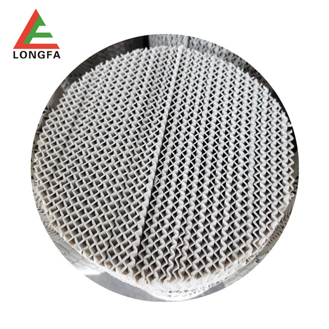 陶瓷規(guī)整填料是一種在培內(nèi)以均勻幾何圖形排布,整齊堆砌的培填料。規(guī)整填料主要是取代塔內(nèi)散堆填料,解決阻力大、比表面積小,傳質效能差、易破碎等突出問題。它規(guī)定了氣液流路.改善了淘流、壁流和潤濕性能.降低了阻力,同時提供更多的氣液接觸面積從而提高了傳質,傳熱效果。可廣泛用于煤氣洗滌塔.焦化洗滌,洗苯、洗氨培、化肥熱氣飽和、脫硫酸、硫酸干燥、吸收塔等。陶瓷波紋規(guī)整填料是用硬質瓷構成,主要成分粘土、石英、長石等經(jīng)特殊烘燒而成。其形成是由許多具有相同幾何形狀的單元體波紋片相互平行,叉疊加組成。