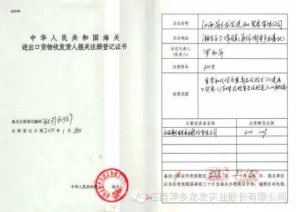 2013年檢進出口公司進出口貨物收發(fā)貨人報關(guān)注冊登記證書